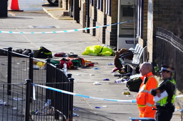 The attack left nine people in need of treatment for life-threatening injuries, one of whom was still fighting for his life in hospital on Sunday evening, after what the British Transport Police (BTP) declared a “major incident.”