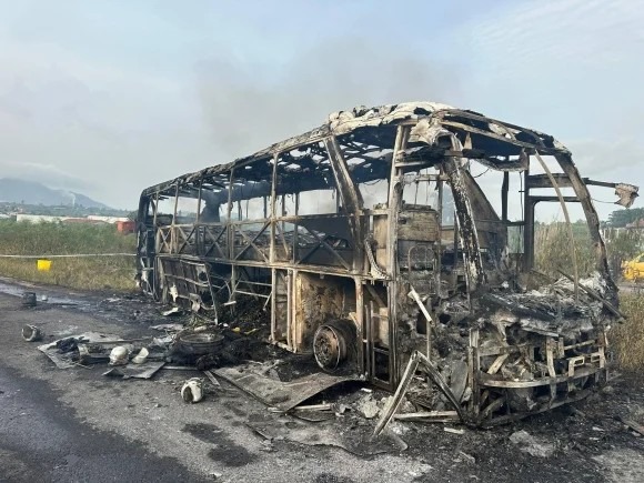 Although the fire spread to a VIP passenger bus, an even greater tragedy was narrowly avoided when the bus driver acted swiftly, evacuating all passengers before the flames fully consumed the vehicle while the bus was badly burnt, no passenger lost their life.