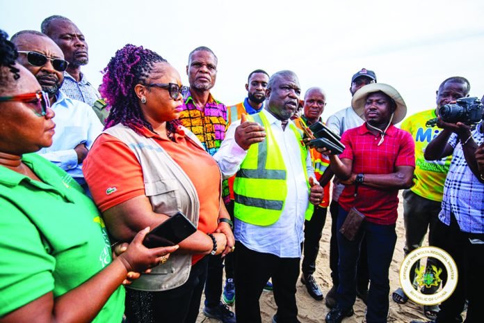 Volta Regional Minister James Gunu has visited Fuveme in the Atiteti Electoral Area of the Anloga District, accompanied by members of the Regional Security Council (REGSEC), following reports that the sea had broken into the Volta River, causing widespread destruction to communities in the area.